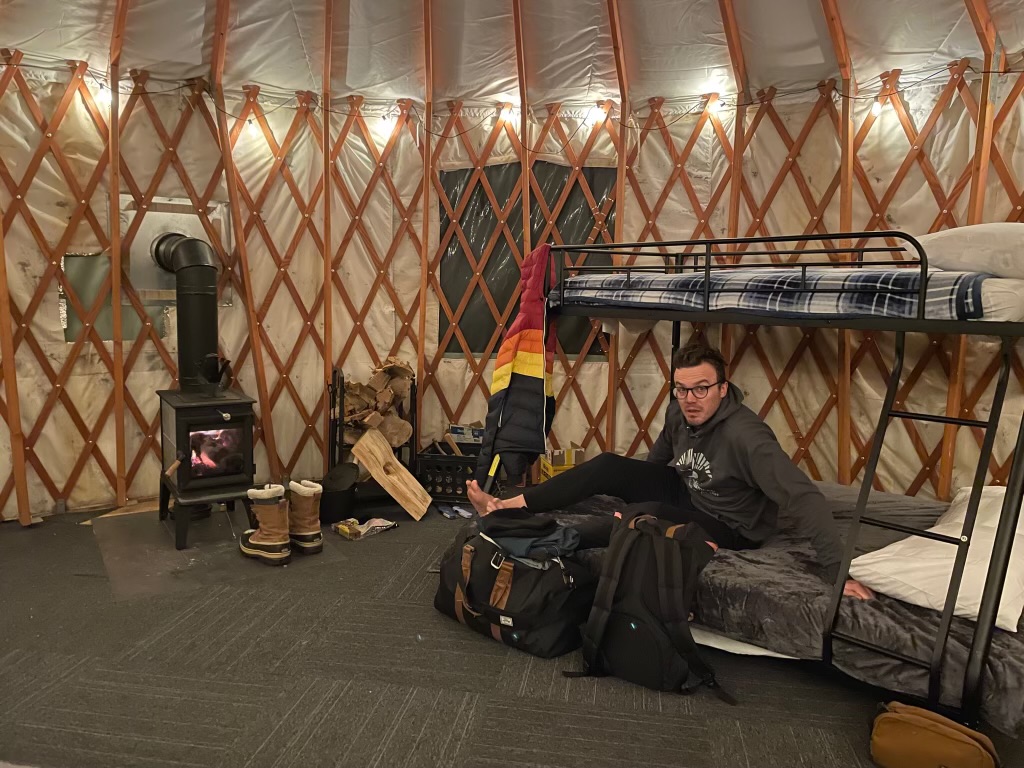 “The yurt was about 50 yards from the lift. It had a wood-burning fireplace. And the bathroom facilities were in the main lodge. We had everything right there and could get right up the mountain first thing,” John recalled. “We even saw a fox at the lift in the morning. That was a special experience.”