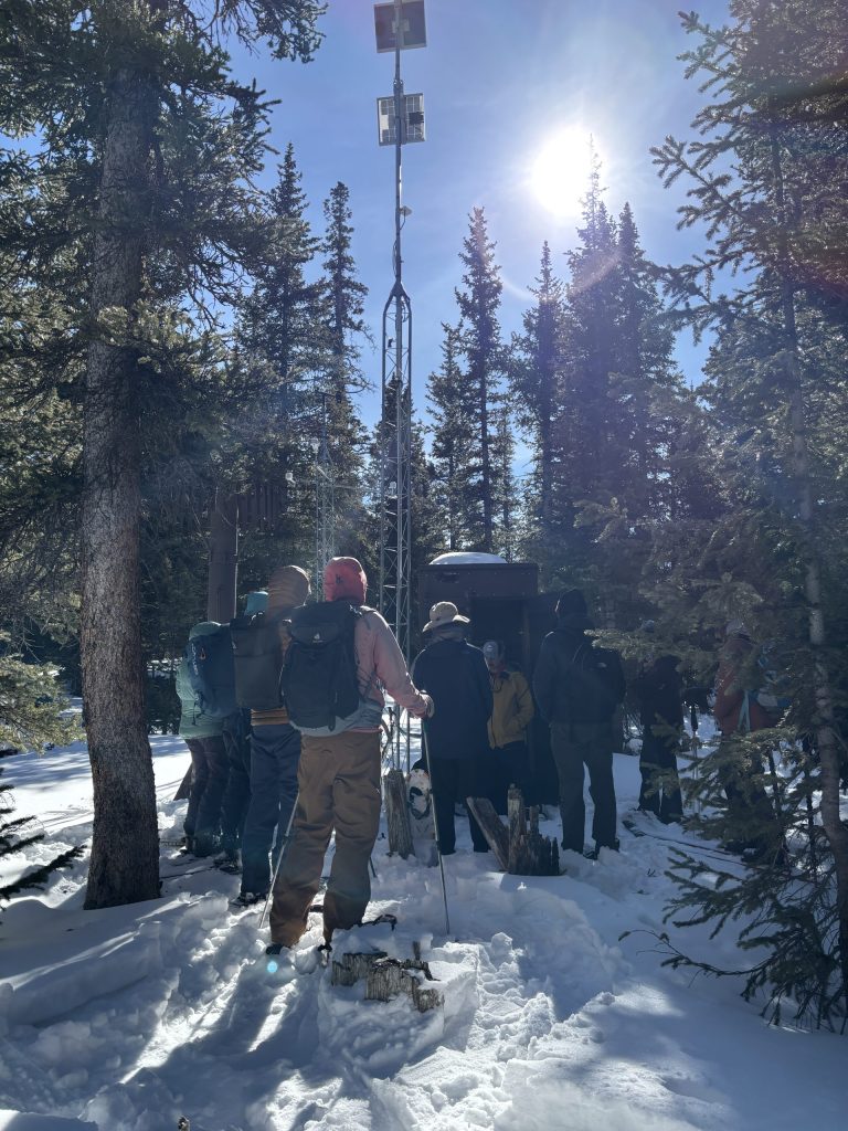 Surrounded by about a dozen people wearing snowshoes and backcountry skis, Domonkos spoke from the parking lot atop Hoosier Pass at 11,542 feet on Thursday, Feb. 5. After introductions, he led the group into the woods, where he described how the SNOTEL system works and the types of data it collects.