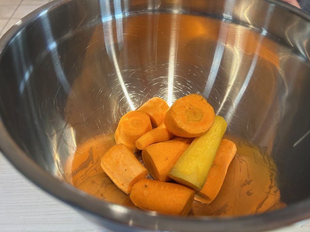 Chop the carrots into thirds or into large 2-3-inch chunks.