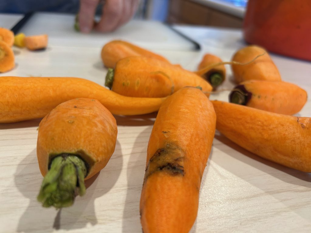 To celebrate nature’s end of summer vegetal bounty, I was recently invited to a friend’s beautiful garden to pull the last of her “ugly carrots” before the first frost of the year. I find misshapen carrots oddly charming, but if you’re not into serving vegetables that resemble a pair of twisted legs, the best thing to do is blitz them up and pour them hot into a bowl. “Souper” soup is served!