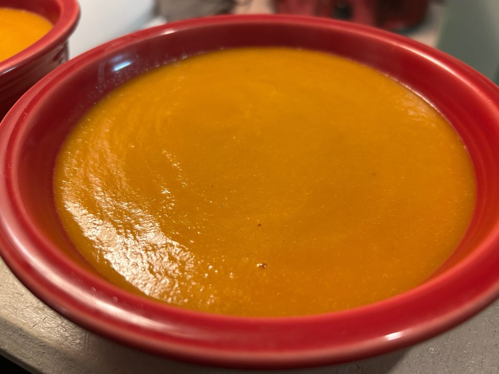 This would be an elegant (and easy!) starter if you do a sit-down Thanksgiving, as you can keep it warm on the stove or in a slow cooker until you’re ready to eat, without affecting the taste or texture. The color is fantastic and seasonal — picture-perfect for your guests’ oohs and ahhs and documenting on social media. It also makes abundant leftovers and tastes even better after it’s had time to sit while the flavors make friends with each other. A perfect festive or fall freezer meal!