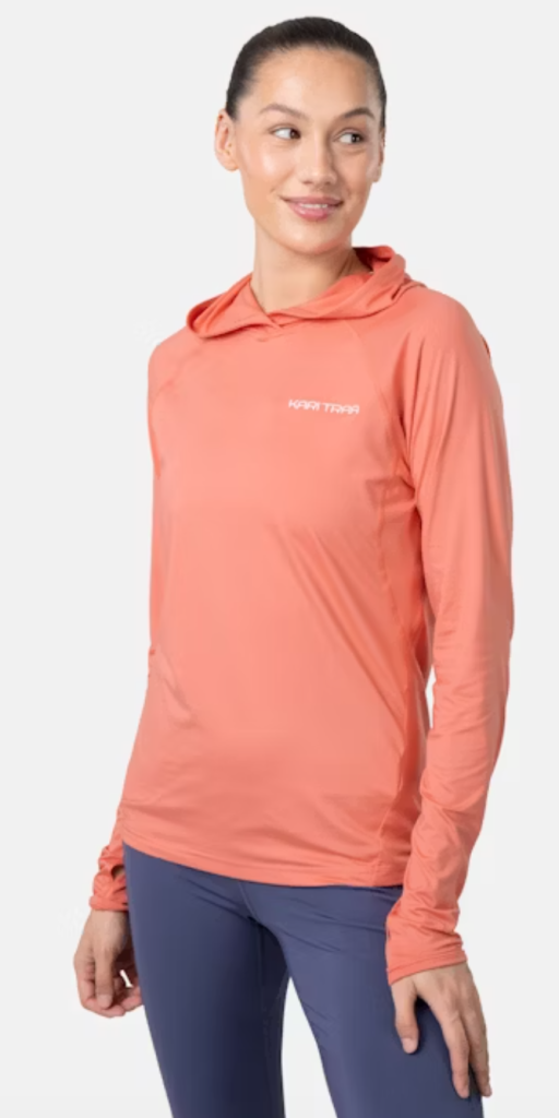 Available in two pastel floral prints, as well as peach and dusty green, this 40+ UPF-protection sun shirt delivers both function and fashion. It fits perfectly — loose-fitting enough to provide all-day comfort while still flattering the body, as opposed to looking boxy. I love the thumb holes and hood for sun protection while on the water. Plus, its 90% recycled polyester is fast-drying. The Vilde Air Tights are made for workouts and on-the-go excursions, with pockets on the sides and back that seamlessly blend in without any bulge. Speaking of bulging, the high waist and four-way stretch control any extra you might have, resulting in a slim-looking fit from 80% recycled polyester and 20% elastane in the main fabric. Mesh along the legs allows for breathability and extra visual interest. I’m sometimes between a small and medium, so I measured and ordered a medium, and they do bunch just a bit around the knees and upper hips, so for a tighter fit you might want to try a size down. I have very thin ankles, so they don’t fit like a glove there.