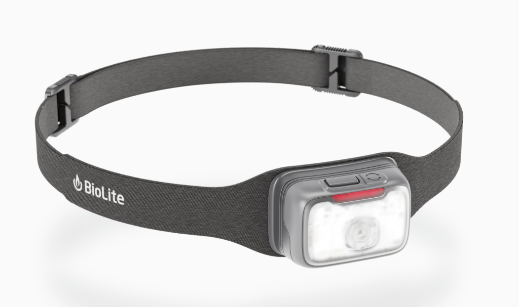 This completely submersible (up to 1 meter depth), 2.6-ounce headlamp with a moisture-wicking band makes using it in the rain no problem. It puts out 500 lumens on high and 1.5 on low, goes from 0-80% charged in 30 minutes, and you can get an hour of light just by charging it for eight minutes. With a full charge, you get six hours on high (200 on low), so it’s perfect for weekend camping trips and much more. Four different tilt angles are easy to achieve, and it has a white spotlight, strobe or floodlight, and red flood and strobes, in addition to its dimmable capabilities. Comes in blue, grey, and red, $69.95, bioliteenergy.com.