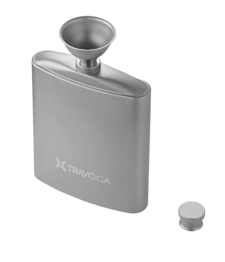 This 7.4-ounce titanium flask, rounded to fit comfortably in a pocket, is so lightweight, you hardly know it’s there. Even the funnel is titanium, and it comes with a carrying pouch so you don’t lose the funnel. Its low thermal conduction keeps whatever’s in there (sometimes I just use it for water while skiing) basically regulated, and it doesn’t change the taste of beverages. And, it’s stylish. Once you try this lightweight titanium flask, you’ll never go back to anything else. Available in natural and blue, $84.99, travoca.com.