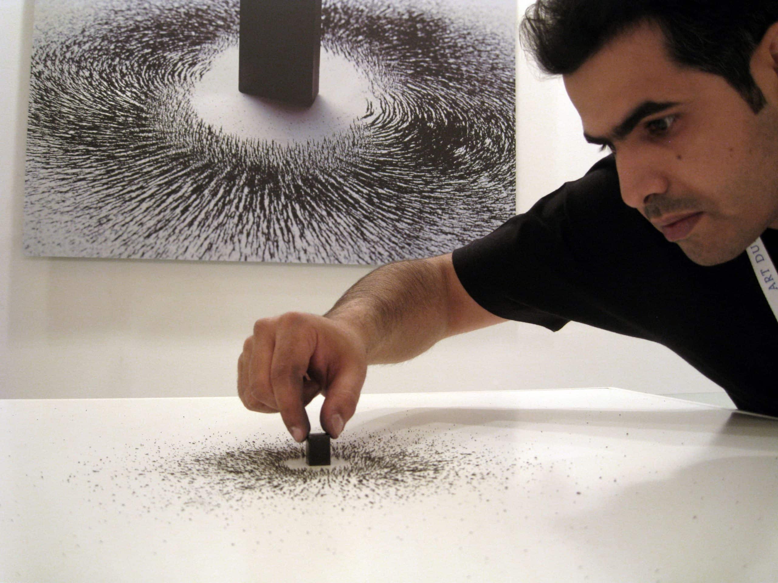 The artwork is a sculptural piece focused on a cuboid magnet that resembles the Kaʿbah of the Meccan rites. Around the cube are spiral patterns made of tens of thousands of particles of iron evoking the annual Islamic pilgrimage to Mecca. Given that Mecca was seen mostly empty for the first time in its history during 2020’s pandemic, this work was chosen to launch the Healing Arts Auction series.