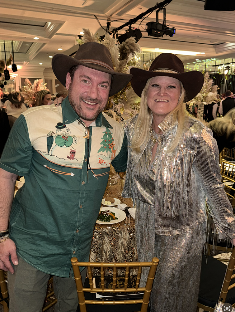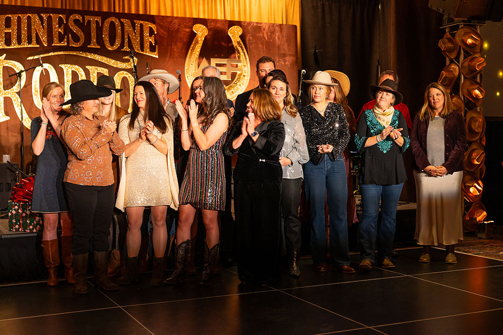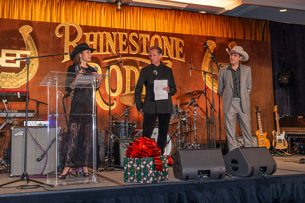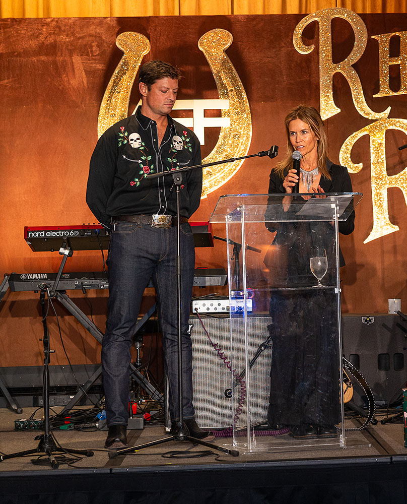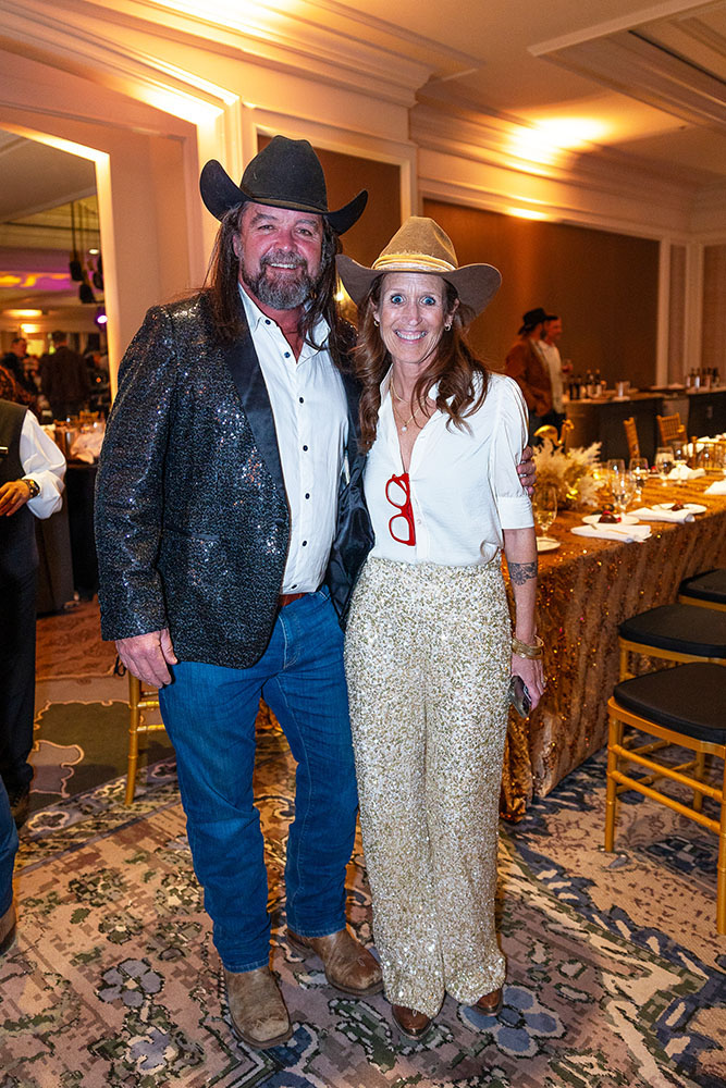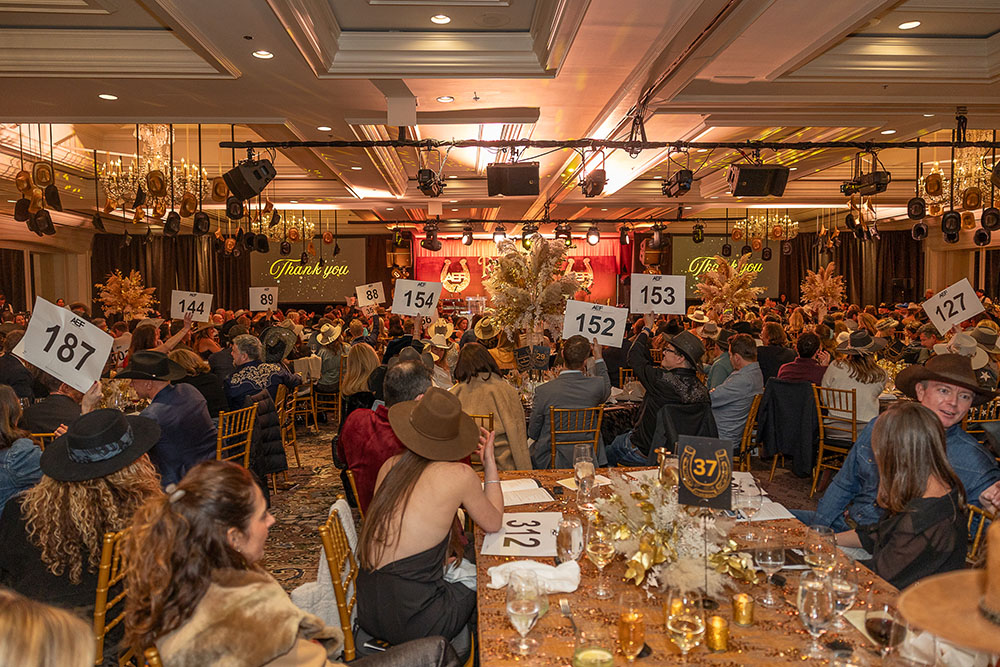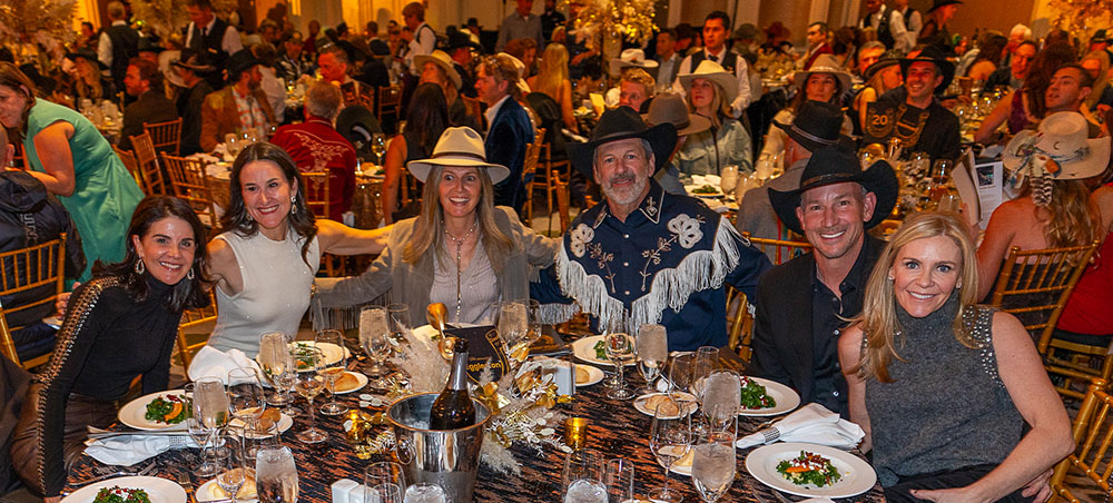 The Rhinestone Rodeo theme inspired western wear paired with glittery cowboy hats, bolo ties, and other accessories. Guests enjoyed a cocktail reception in the foyer, followed by a seated dinner in the ballroom with speeches honoring Aspen School District Alumni teachers and faculty, a live auction successfully guided by leading charity auctioneer Lydia Fenet, and a riveting set by alt-country musician Paul Cauthen and his “big velvet” sound. The dance floor was filled for Cauthen and his band as all celebrated a successful evening of fundraising for education.