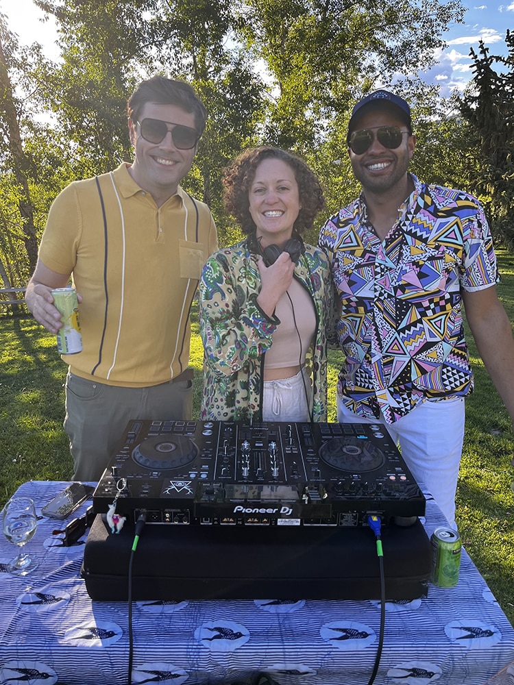 Her husband planned the pop-up party in the park with a massive pan of paella prepared by Chef Dennis, along with Caesar salad and shellfish, paired with beer, wine and cocktails. Guests enjoyed mingling, cozy seating areas and grooving to beats by Alex Golden.