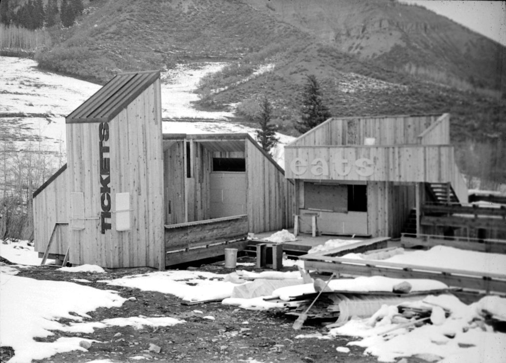 “CU students design, build SAA facility” announced The Aspen Times, Nov. 6, 1969. “A unique base-lodge facility at the new ski area at Snowmass-at-Aspen will greet skiers this winter. Called The Stump, in keeping with the existing Timbers and Twig at West Village, it was completed recently. University of Colorado architecture students were incited to submit designs for the facility which consists of a ticket booth, men’s and women’s rest rooms, and snack bar. The students submitting the winning design then built the 2200 square-foot structure themselves. The object was to give the students an opportunity to design a building that would actually be built, Snowmass officials said. Then, by constructing it themselves, the students would be exposed to the practical problems confronting the contractor as a result of the architect’s design. The project also taught the students ways of conserving money without sacrificing good design, according to officials. Richard Whitaker, a CU professor of architecture, picked six of his third and fourth year students to submit designs to a judging group consisting of William Selby and Donald L. Davidson of the Snowmass American Development Department and Nasser Sadighi from the Aspen architectural firm of Fredric A. Benedict and Associates. Students Check Raleigh, David Kelty, Gregg Snowden, Steve Franek, Andy Yates, and Joe Van Sant each did a design, and the resulting ideas were critiqued by the group and consolidated to come up with the best plan. Students then spent a month in Aspen working with Benedict’s firm and analyzing their plan in relationship to site, materials needed, and how the project could best be accomplished. They began actual construction of the building last June under the supervision of a Snowmass American construction engineer Rolf Sandberg. The students ordered all the material, worked with all the subcontractors, and did all the carpentry work. They received architectural course credit, food, and lodging for the summer project. Snowmass officials said they hoped additional designed projects could be given to CU architecture students in the future.”