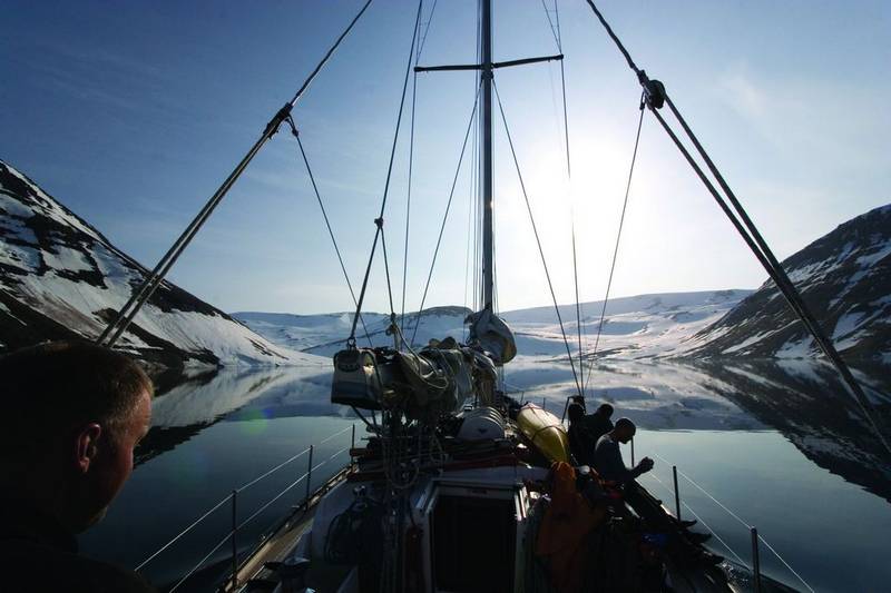 A return for the third time almost didn’t happen. Mahon, who was preparing an assault on California’s highest peaks with Davenport, initially turned down friend and Icelander Heidar Gudjonsson’s offer. It became clear in March, however, that unseasonably dry conditions in the west would make such a project futile. Mahon quickly contacted Gudjonsson, who helped plan the Greenland trip, and asked if there was still room for him – and Christy.”There was no way I could go for a third time and not bring her,” Mahon joked.Sauer, a contemporary art and outdoor enthusiast, said Reykjavik’s established arts scene intrigued her, and she had always wanted to visit. She finally had her chance.No roads provide access to the extreme northern reaches of the Westfjord Peninsula – it’s accessible only on foot or boat. “That’s where the novelty lies,” Mahon said. Remnants of old fishing villages provide a hint of the area’s past. The only inhabitants are the occasional ptarmigan or arctic fox darting across the solitary landscape.Untouched snow-covered hills dwarf the smooth waters of the Jokulfirdir – the reserve’s main waterway – and the narrow fjords. The land, resembling a group of outstretched fingers, extends into the Greenland Sea, pointing toward the Arctic Ocean and the North Pole.Choosing where to ski was as simple as pointing to a slope from the Aurora’s deck. The Zodiak, an inflatable motorized watercraft, would then shuttle the group to shore. Then skinning would commence. “It was like a big playground out there – it was unreal,” Sauer said. “Here, it’s more of a point-to-point trip where you go up and come down. There, you’d go out and ski for eight hours, skin up, ski down, then go to another place. It was so different, so off the beaten path.”
