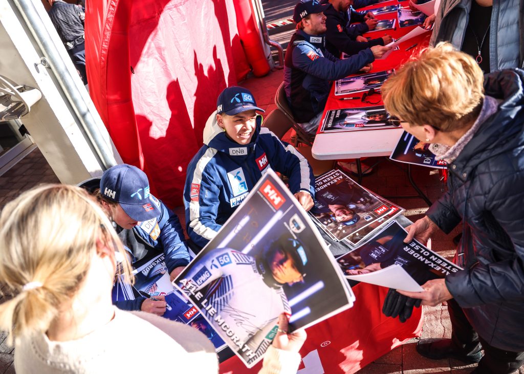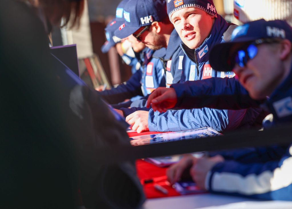 Members of the Norwegian ski team sign autographs prior to the bib draw ceremony on Thursday, Feb. 29, 2024, at Snowmass Base Village. Austin Colbert/The Aspen Times