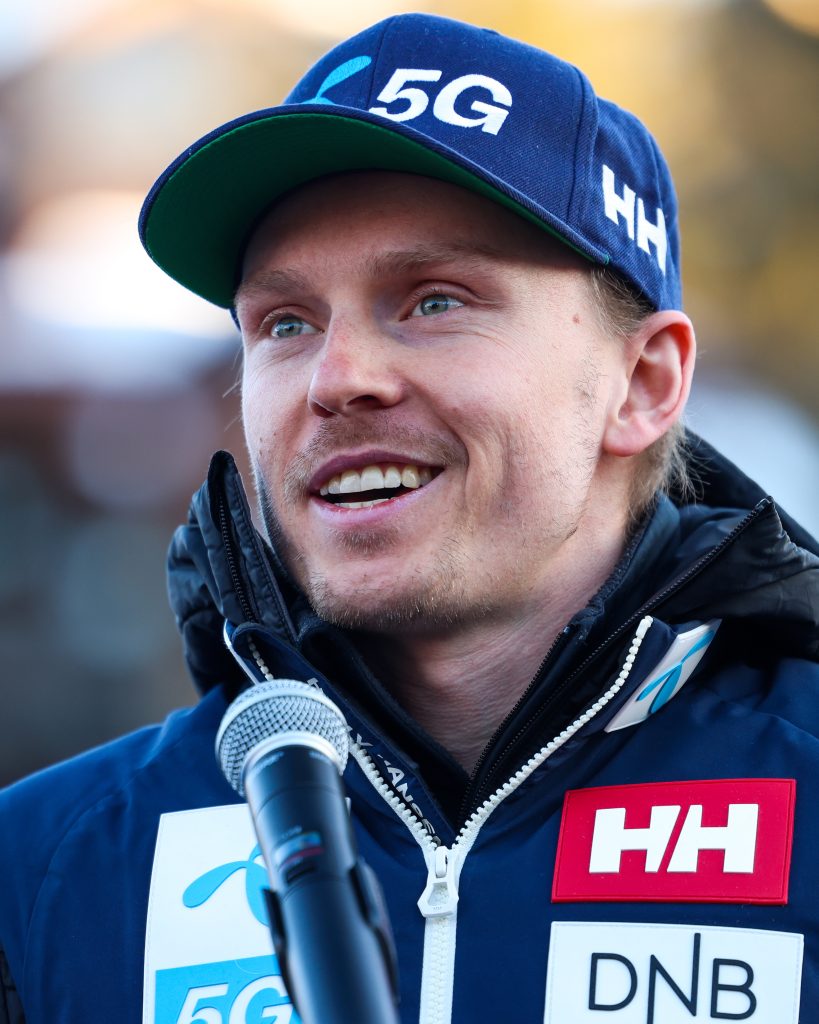Norway’s Henrik Kristoffersen talks to the crowd during the World Cup bib draw ceremony on Thursday, Feb. 29, 2024, at Snowmass Base Village. Austin Colbert/The Aspen Times