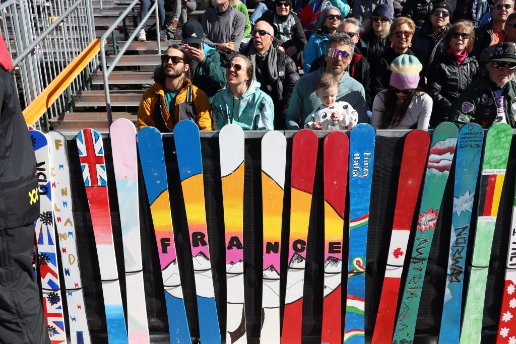 Decorative skis line the grandstands during the FIS World Cup Giant Slalom at Aspen Mountain on Friday. Ray K. Erku/The Aspen Times